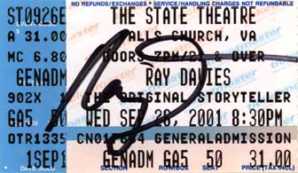 Ray Davies is a modern era vaudevillian. His prolific monologues describe his life, his music, and his story of The Kinks. Davies' presentation is enthusiastic, engaging, and entertaining in delivery. He appeared at the State Theatre in Falls Church, Virginia, on Wednesday, September 26, 2001.