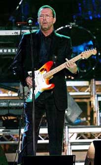 Eric Clapton performed his signature masterpiece, "Layla", from his stint with Derek and the Dominos. Exquisitely dressed in black, ole Slow Hand tore into this 1970 classic with passion. The Palace symphony supported Clapton's electric guitar solo on the orchestral coda with percussionist Ray Cooper banging on a gong.