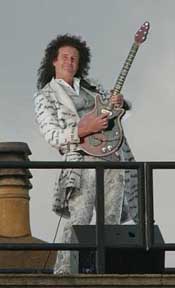The mighty Queen, as they were introduced on stage, were represented by guitarist Brian May and drummer Roger Taylor. The two were supported by the amazing Palace band. Taylor sang lead vocals on "Radio Ga GA", a song he composed. Brian May handled the vocals for "We Will Rock You", which he wrote.