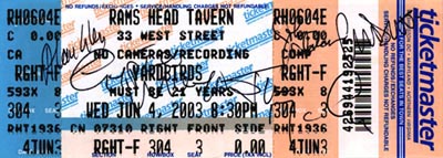 The Yardbirds, formed during the explosion of young British R&B enthusiasts in 1963, are headlining their first U.S. tour in decades. The reformed Yardbirds appeared in Annapolis, Maryland, at Rams Head Tavern on Wednesday, June 4, 2003.