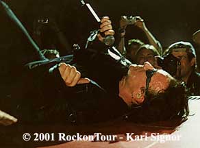 For any music maniac, and no doubt for the diehard U2 crowd that follows the band, U2's Elevation Tour 2001 is unlike any other live concert. This time around U2 have allowed their fans a rare and unique opportunity to share the experience within a hand's reach, literally. General admission tickets are those most sought after, and a spot on the floor, the best in the house. The stage thrusts itself right into the audience with a heart-shaped catwalk and encloses a few hundred fans who were determined enough to be among the first in line before the venue doors opened. Other floor ticket-holders skirt the outside of the heart and no doubt have an unforgettable peek at the band for two hours.